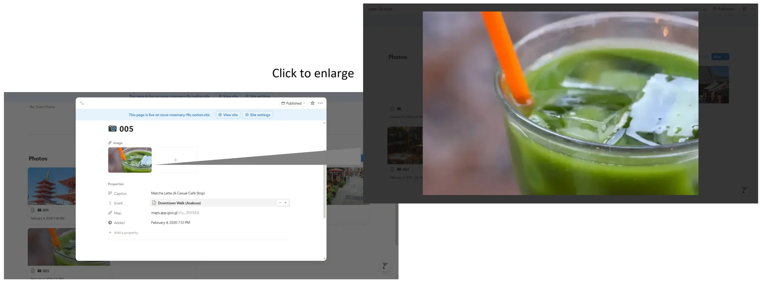 - The photo and a short note from that moment are placed together